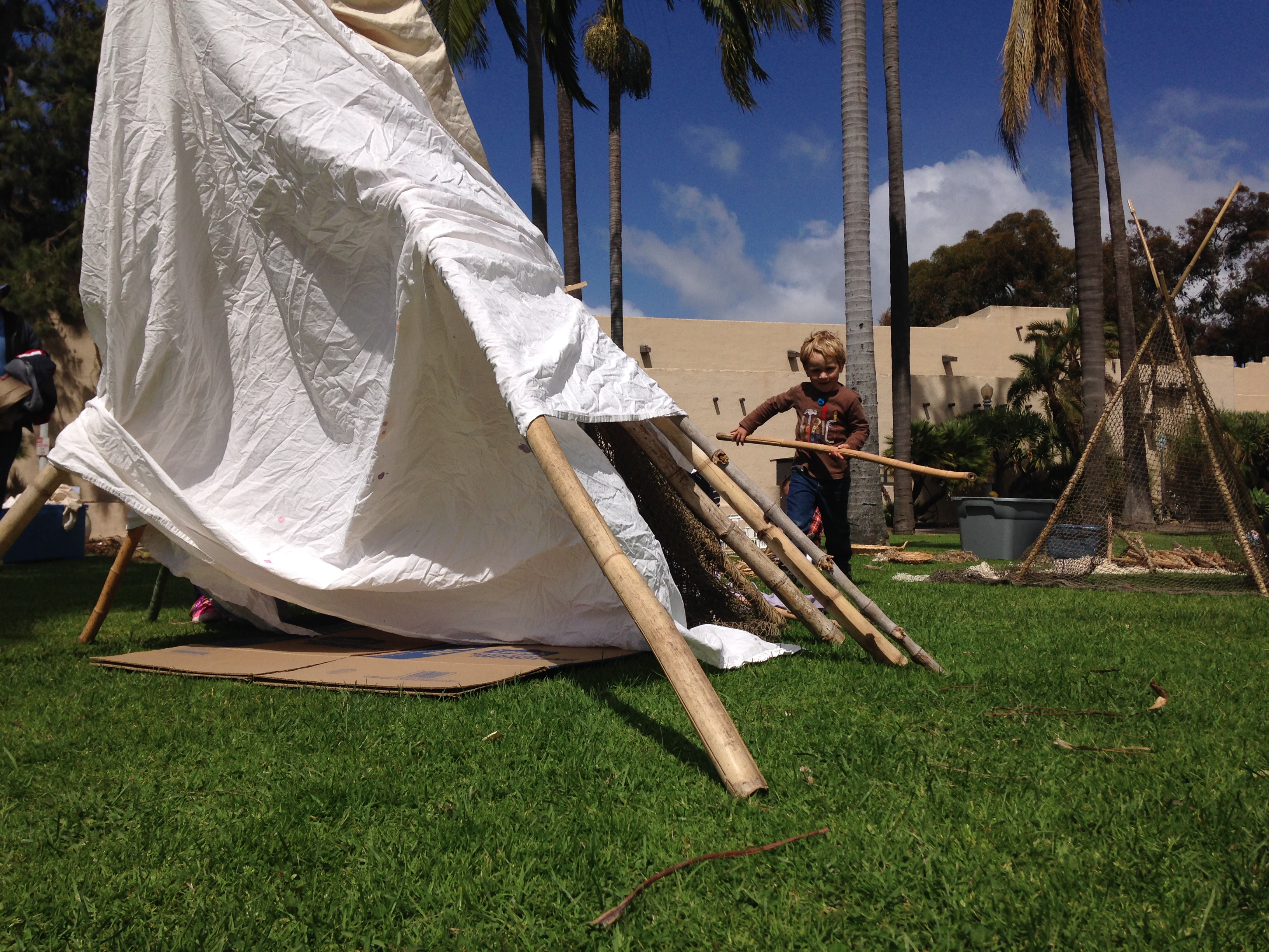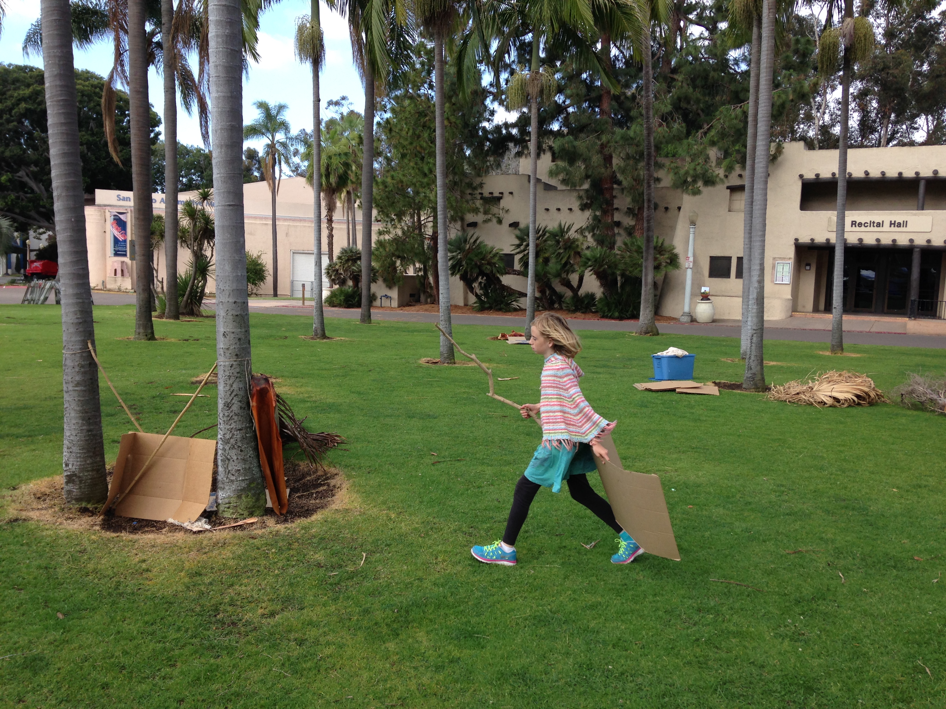 One of the funny realizations of the day was this: since I have been a playworker, I have not played with the materials of my California childhood. It brought back lots of memories of playing with California pepper branches, eucalyptus, and palms. The smell. The razor-tipped fronds. The shagginess. This is my terroir. What better place to become a fully realized playworker than in the land of my first playing?