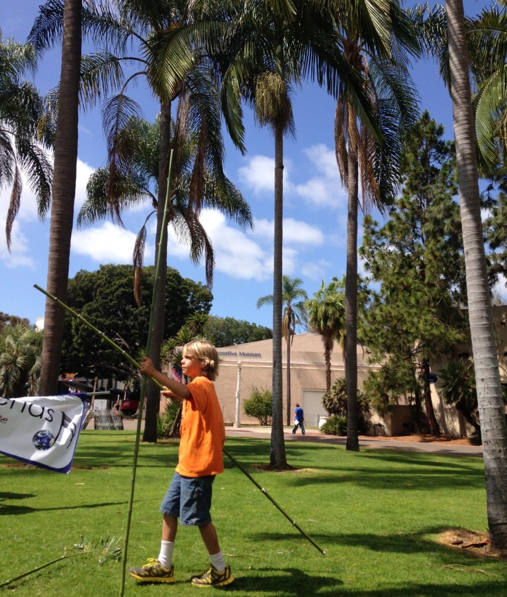 “Today, we have a real playworker among us,” San Diego Civic Innovation Lab Strategist for Public Space and Ecology Ilisa Goldman said as I and five adult volunteers at the Pop Up Nature Play event in Balboa Park circled for a pre-play briefing. Standing among somewhat orderly piles of palm fronds, “tree cookies,” bamboo and pinecones, I realized that Ilisa was the first person (well, other than me) who had called me a “playworker” since I began the graduate program in Play and Playwork at the University of Gloucestershire in 2012. In the United States, a place where the term “playworker” is as exotic a word as “unicorn,” being called a playworker felt a bit exhilarating. And then a little strange. And then I started questioning myself. Am I a playworker? Do I get to call myself that? Do I have to earn more merit badges before I can officially say that I am one of this mystical order of Peter Pan players?